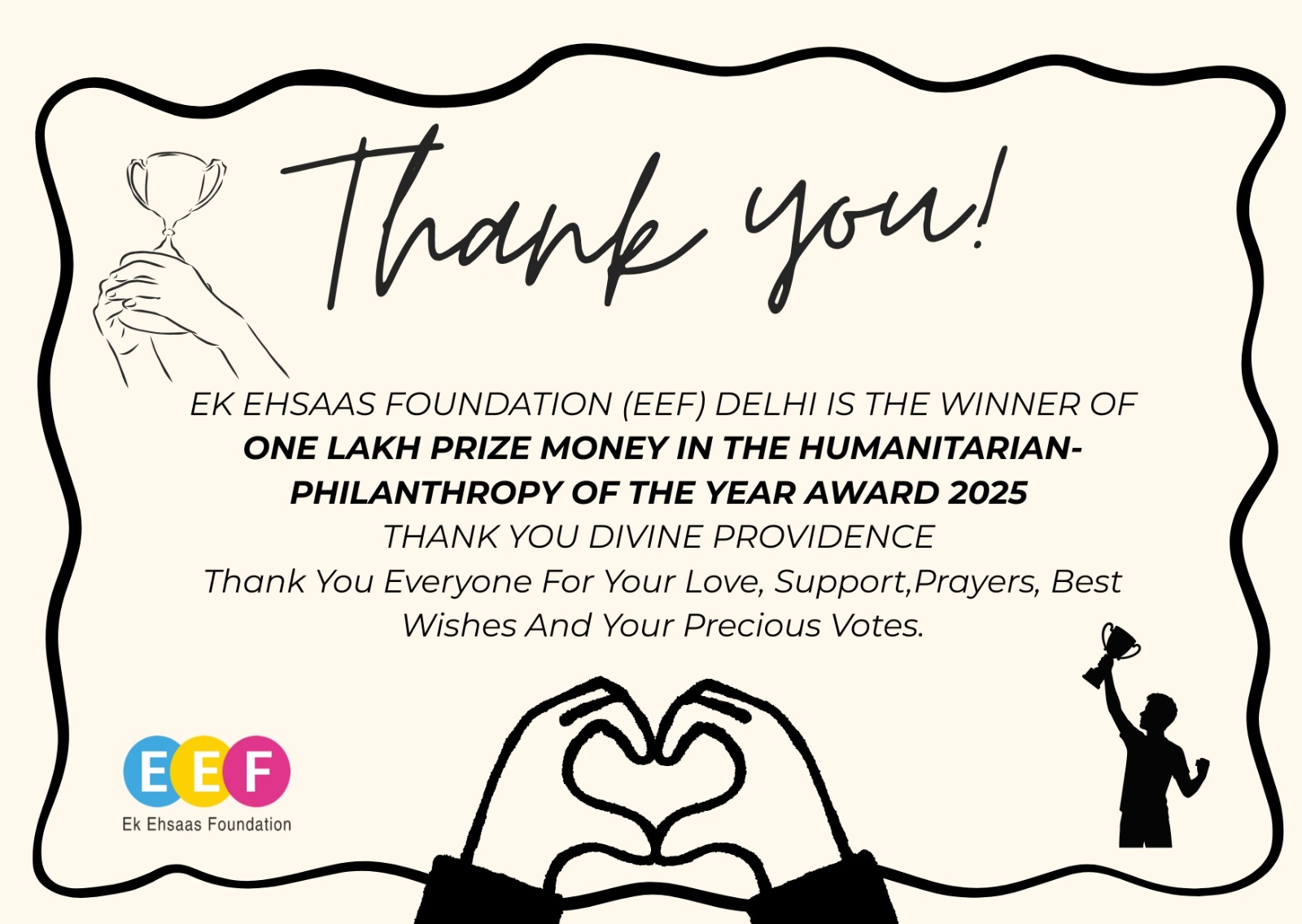 EEF is now my life mission. People around me have moulded me into what I am today. There was no one particular event or incident but a long string of experiences that were mostly wonderful and sometimes painful too. Hence, EEF aims to fulfil the hopes, joys and aspirations of people around us.